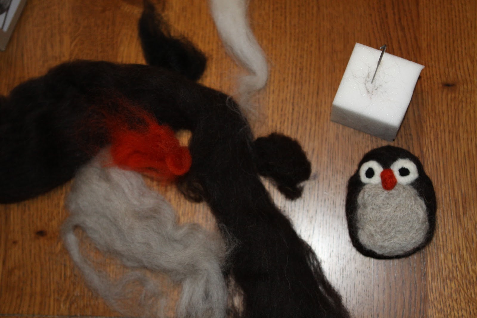 Trisha got us needle felting kits for Christmas so we decided last night to test it out. Her's was a chick and mine was a owl! It was so fun! If you don't know what needle felting is...you take big strands of wool ball them up and stab them with a needle until they start to take shape. It's a great way to get aggression out! Ruth and Dotty were great little helpers.